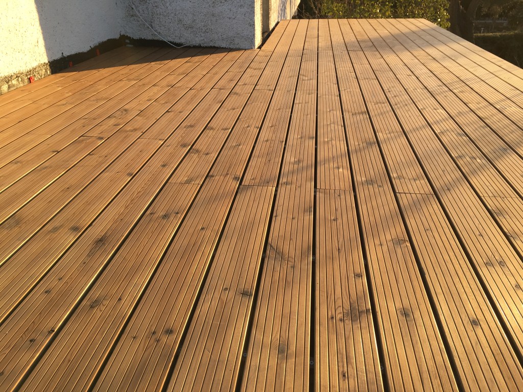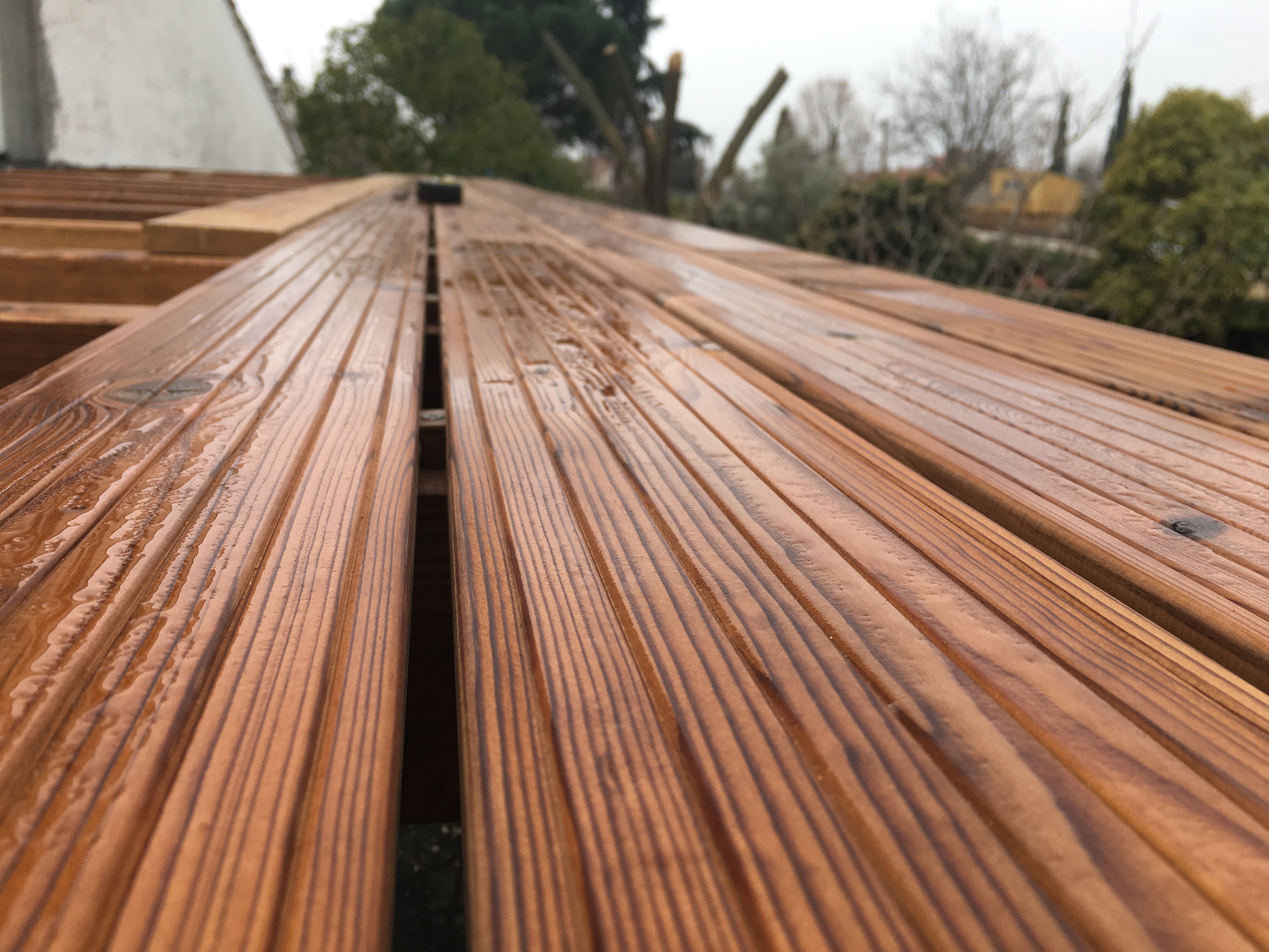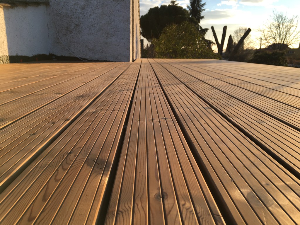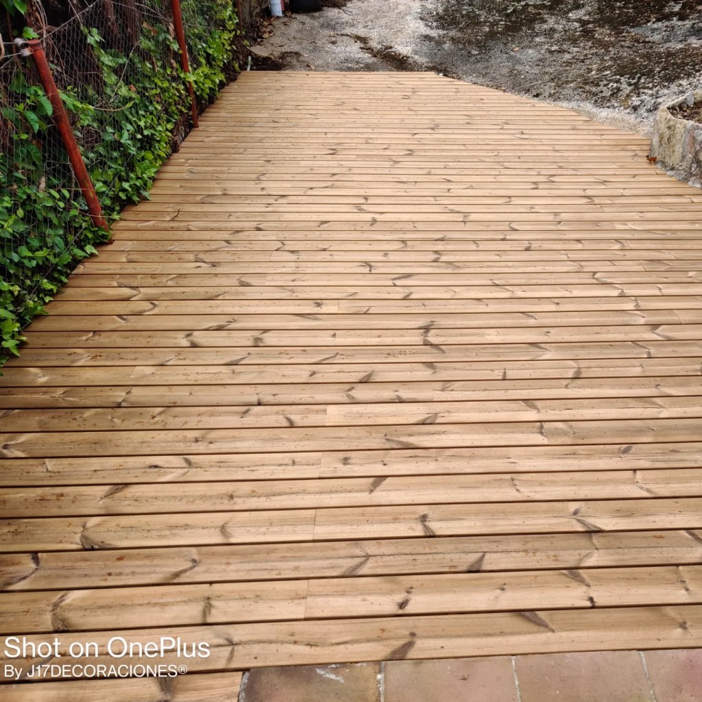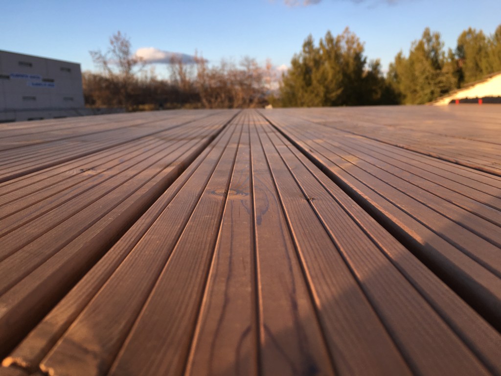La recomendamos a nuestros clientes por su belleza y sus propiedades decorativas, cada vez son más los que deciden utilizar la madera en exterior para decorar sus terrazas, tanto para pavimentos como para revestimiento de paredes o vallas. El mantenimiento de las tarimas exteriores se hace hoy en día con unos aceites específicos para cada madera siendo su acabado muy natural, y su durabilidad de hasta tres años.